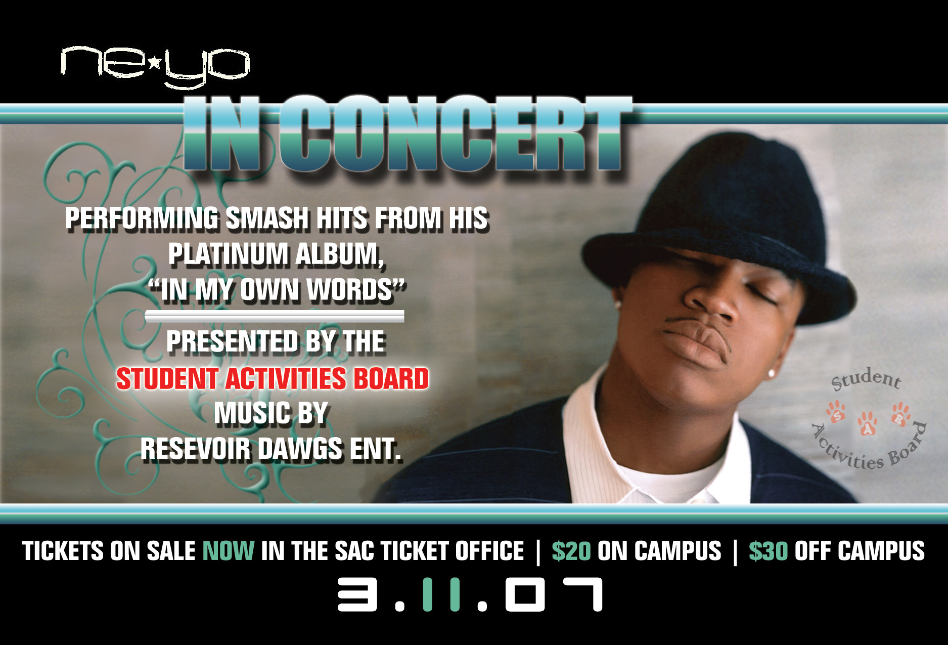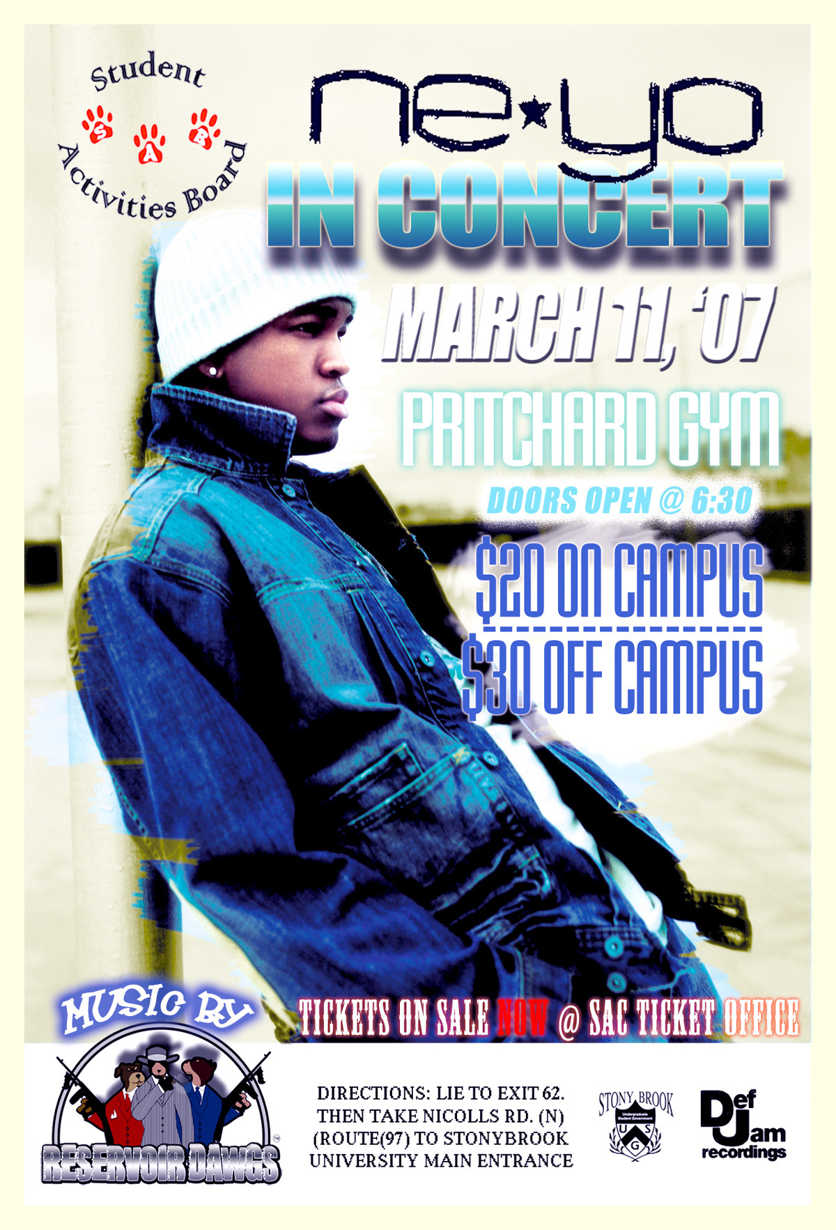 Marketing Design for Spring Conert featuring headliner Ne-yo, programmed by Undergraduate Student Government & Student Activies Board @ Stony Brook University
